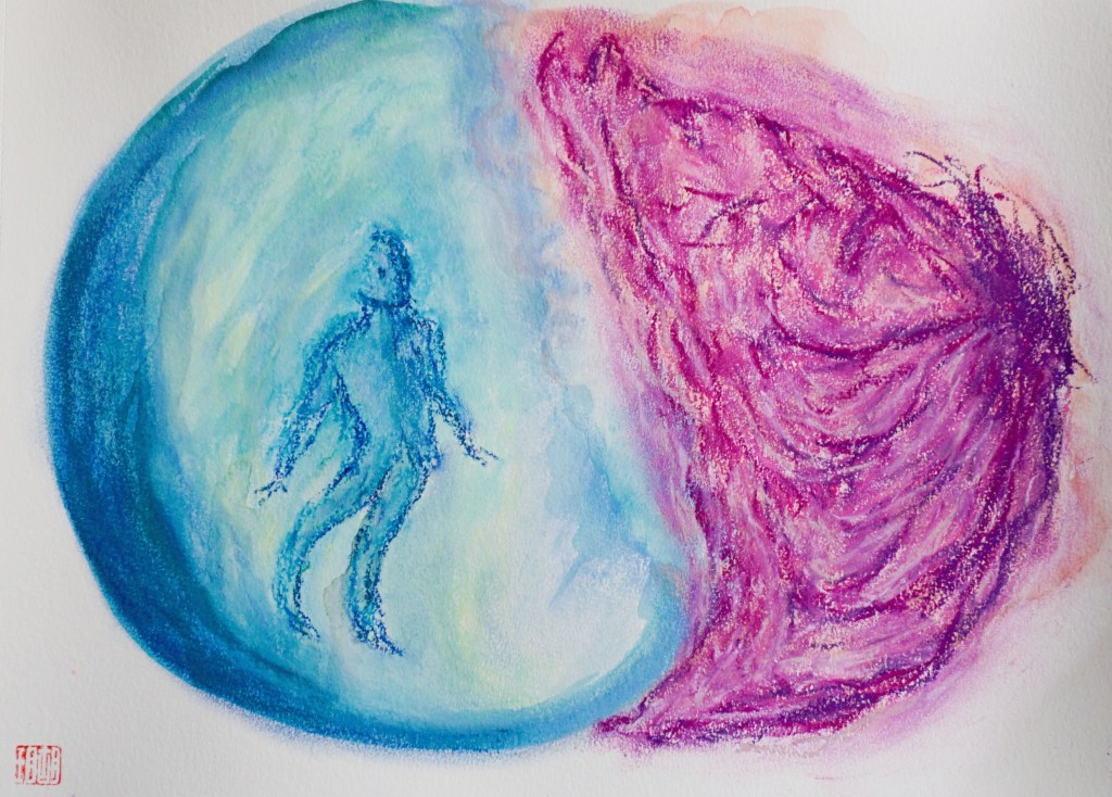 Aquarelle, encre et pastel sec sur papier, 21×29.7cm