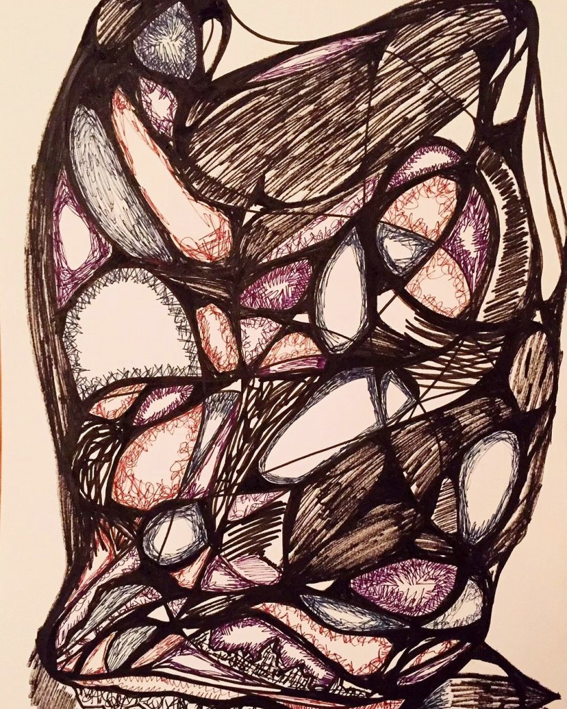 Peinture à l’huile et stylo à encre sur papier, 30×40cm